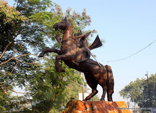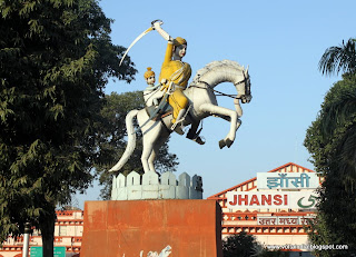Como já disse, cheguei a Jhansi à noite, já bastante tarde... Em frente à estação achei curiosa esta estátua...Vim depois a saber que representa Jhansi Ki Rani (a rainha de Jhansi, cujo nome era Lakshmi Bai), uma das heroínas da rebelião de 1857, símbolo da resistência contra os ingleses. A estátua mostra a rainha a cavalo transportando o filho adoptivo. Segundo consta, ela morreu sobre o cavalo, com as rédeas nos dentes, segurando o escudo e a espada com as mãos e tendo o filho preso às costas. Pela sua bravura é considerada um símbolo para a liberdade e um exemplo para as mulheres hindus... a Joana D'Arc da Índia!
