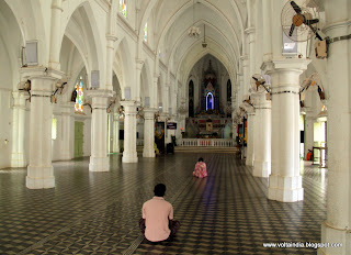 Muito perto, a igreja de St. Arockiya Nathar (vista exterior e interior) e...