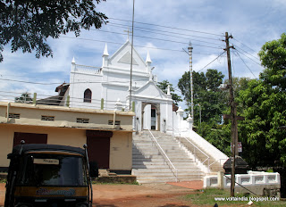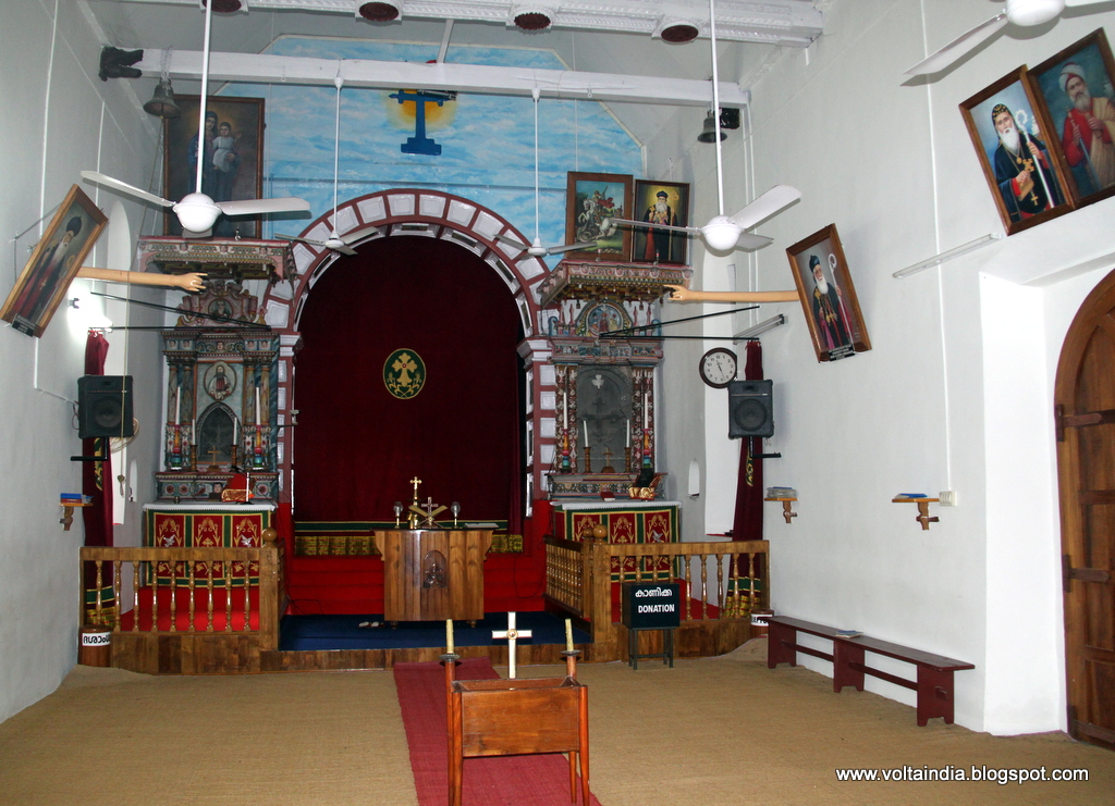A primeira que visitei foi a igreja de Santa Maria de Cheriyapaly que é um raro exemplo da arquitectura indo portuguesa em Kerala. Foi inaugurada em 1579 e nela se destacam os alpendres com tectos em madeira (obra da mais fina marcenaria!) e as pinturas interiores - como nas igrejas cristãs de São Tomé, por tradição, não existem imagens (estátuas), as pinturas, atribuídas a um pintor português, destacam-se por conterem elementos decorativos europeus.